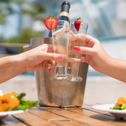 Cool bar & grille overlooking the bay. This is really a hidden gem, from the outside it doesn't seem like much - nestled in the bottom of some hotels/apts. Parking was seamless and free. It's pretty huge with a lot of open seating. Seems like a great place to watch a game We just spent the day at the beach so we wanted a pick me up. We were greeted immediately and sat near the water. Our server was pretty decent although she had a slight attitude. We ordered some wings, a turkey burger, Caesar salad with salmon, octopus and a round of Don Repo shots. The octopus is the star here - I'm a little hesitant trying octopus just anywhere but I'm glad I did; we were pleasantly surprised. It had a unique flavor with great texture. The Caesar salad was a little tangy for my taste & the wings and turkey burger were standard but good. I'd give it 4 star for the vibe